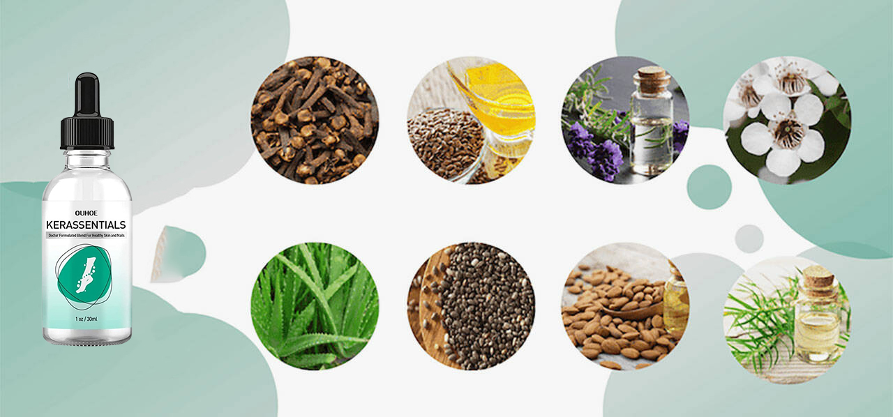 У кожній краплі Kerassentials ви знайдете: Спеціальна потужна формула, яка поєднує спеціальні високоякісні олії та мінерали.